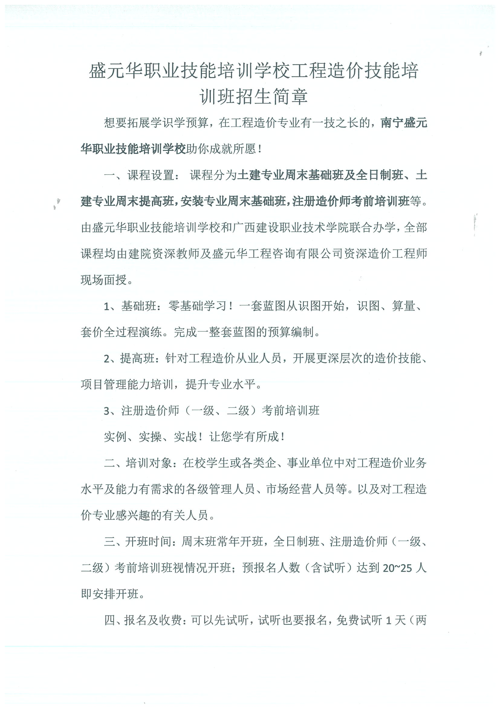 | 盛元華職業(yè)技能培訓(xùn)學(xué)校工程造價(jià)培訓(xùn)班辦學(xué)簡報(bào)及招生簡章 |